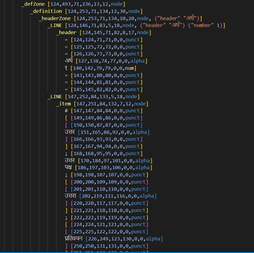 Today, I also continued working on building NeWiktionary analyzer. I wrote more analyzer sequence to divide and categorize word remaining word content. For example, I wrote rules in NLP++ to recognize definitions and put them under node called defZone that includes definition and its examples. Under the defZone, I created another rule called “item” that identifies all the definitions and put them as item1, item2, and so on as shown in fig. below: